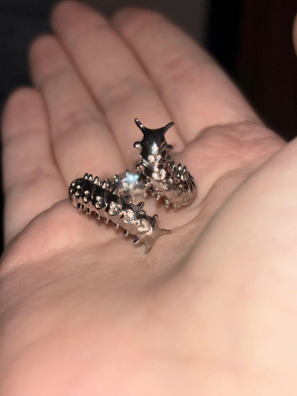 A hundred legs of death. One of the most artistically challenging designs I've created so far, featuring a centipede crawling up your finger and a subtle heart motif integrated into the exoskeleton.